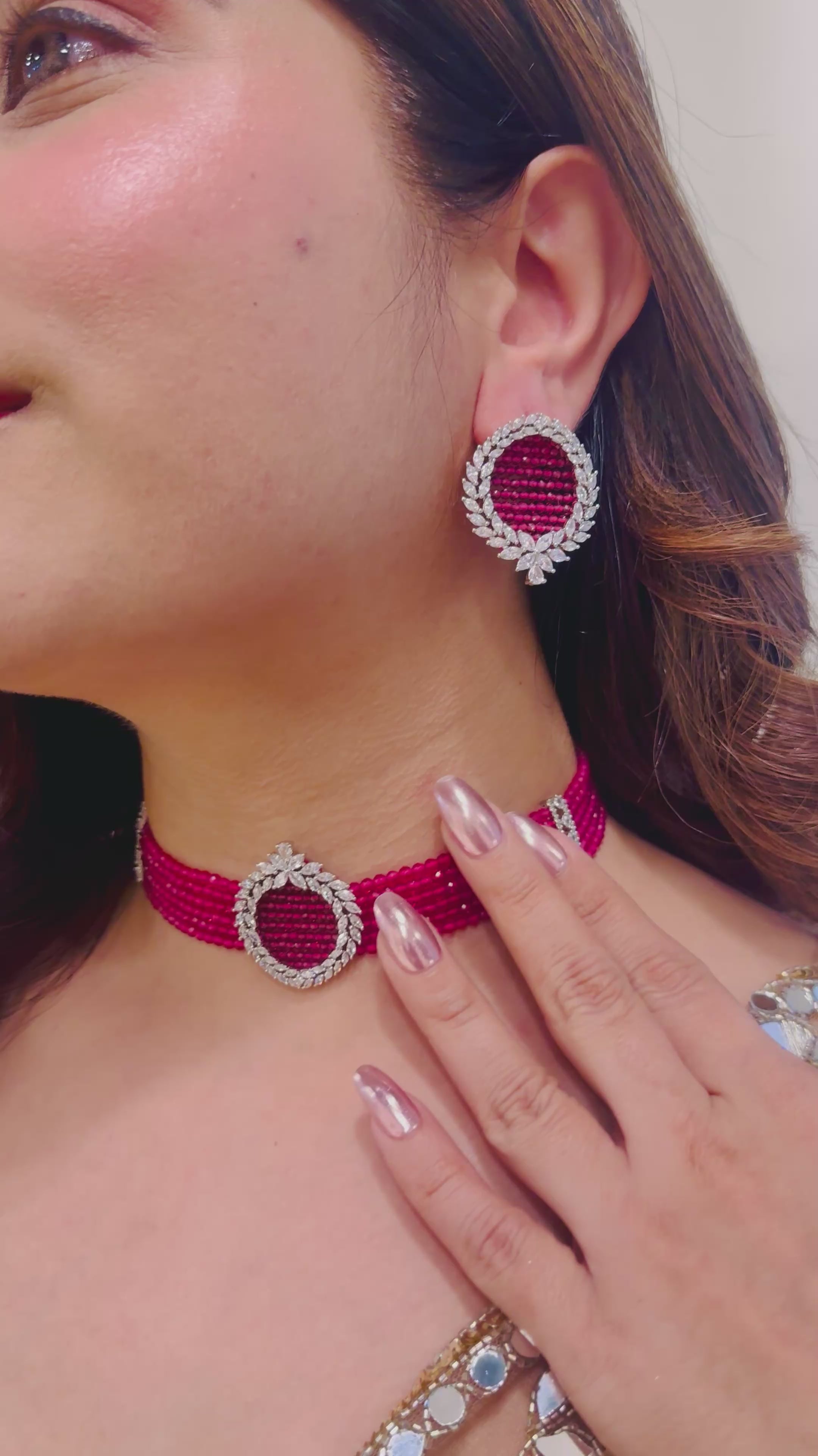 Set Includes: One choker necklace and a pair of matching stud earrings.