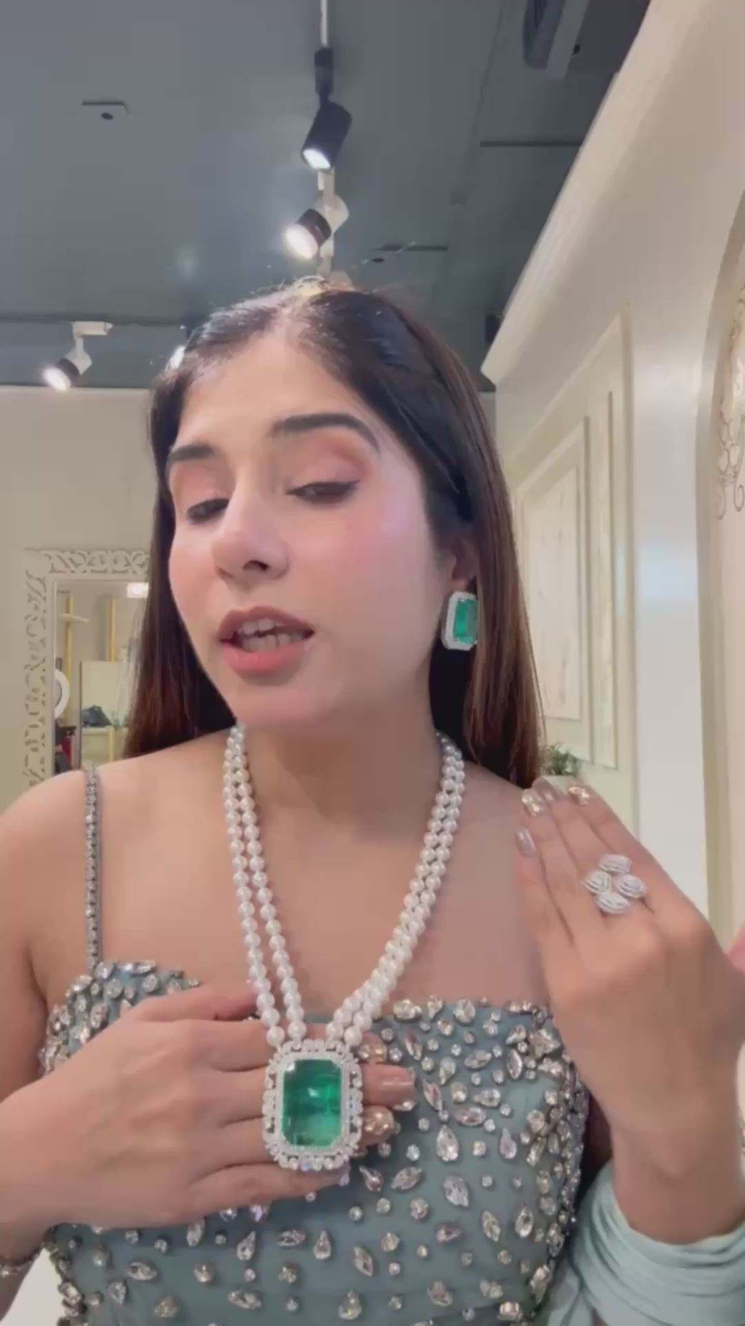 Emerald colored neckpiece jewellery comes earrings with omega clip