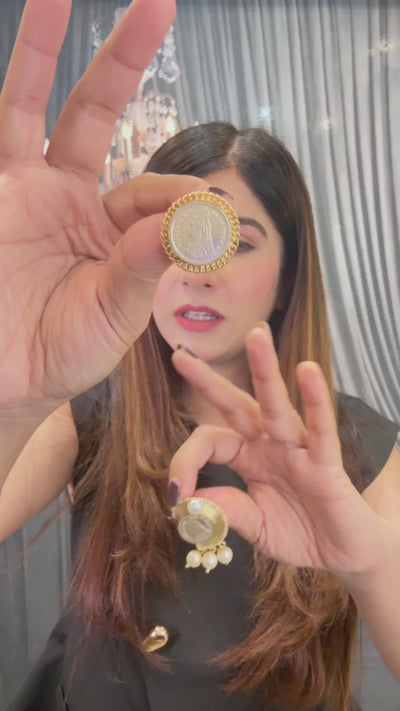 Features an intricately detailed coin with a profile design, encircled by a gold-toned arc and delicate beadwork.Elevate your style with these exquisite gold-toned earring jackets, blending vintage charm with modern sophistication.These statement pieces are perfect for both special occasions and adding a touch of luxury to everyday wear.